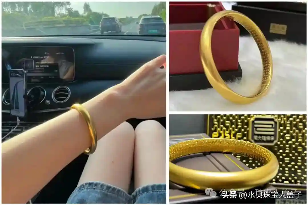 心经黄金手镯,采用泥鳅背手镯的外观造型,手镯内壁錾刻《心经》一周,寓意福德圆满、环福一生。
