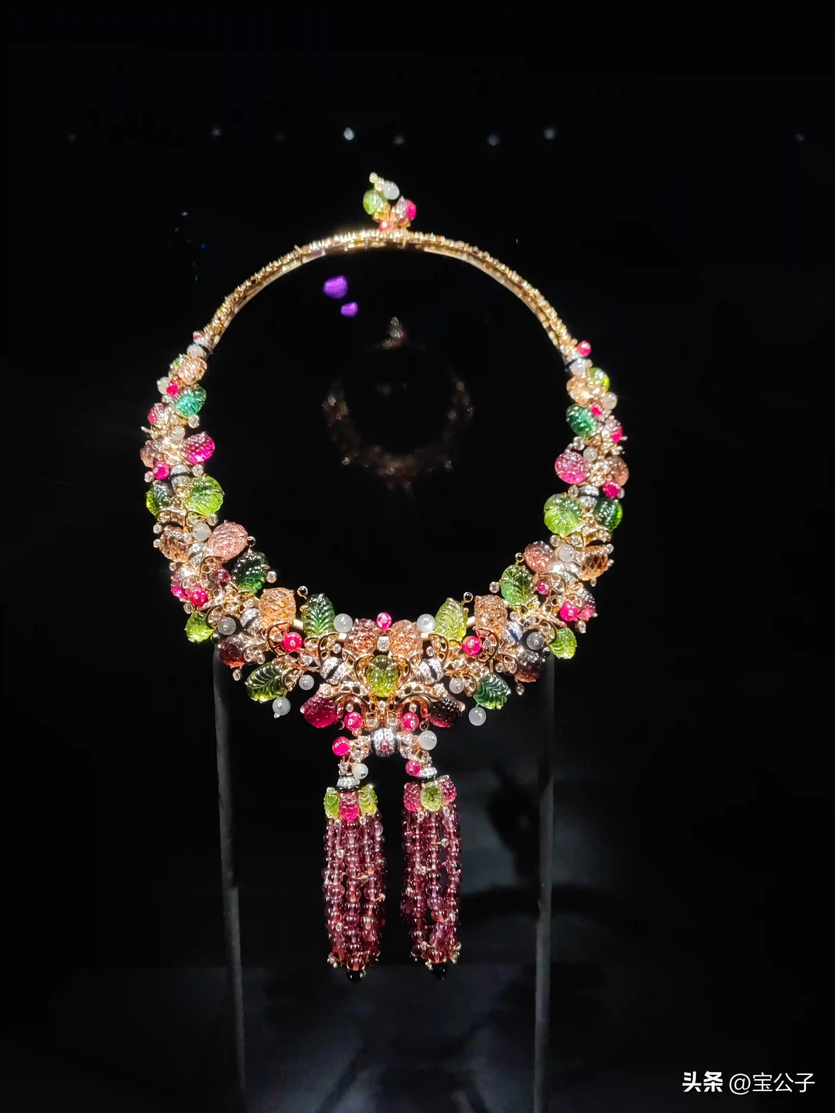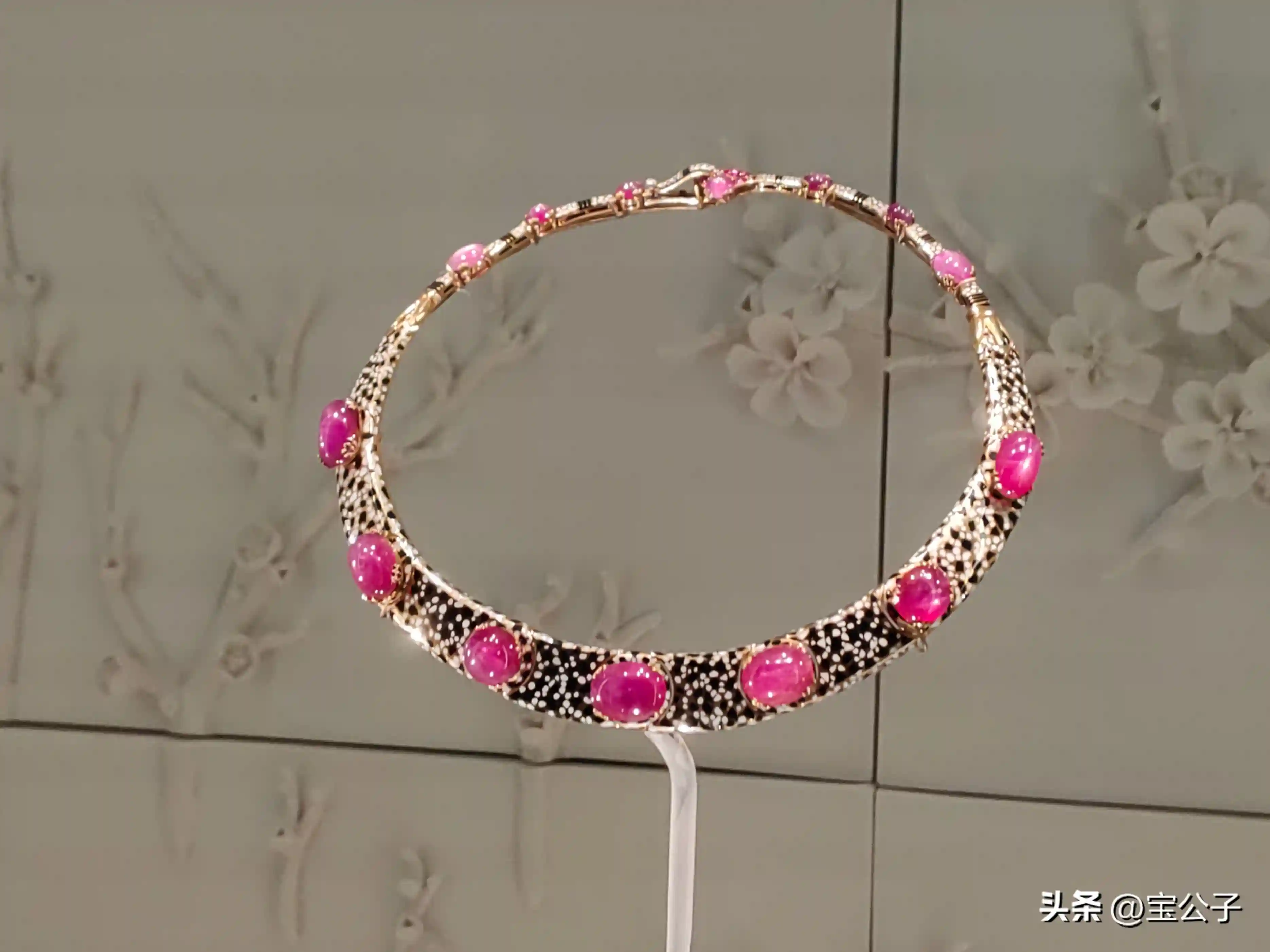 ↑项链金、星光红字石(总重约82.31克拉)、红宝石、珐琅|卡地亚巴黎