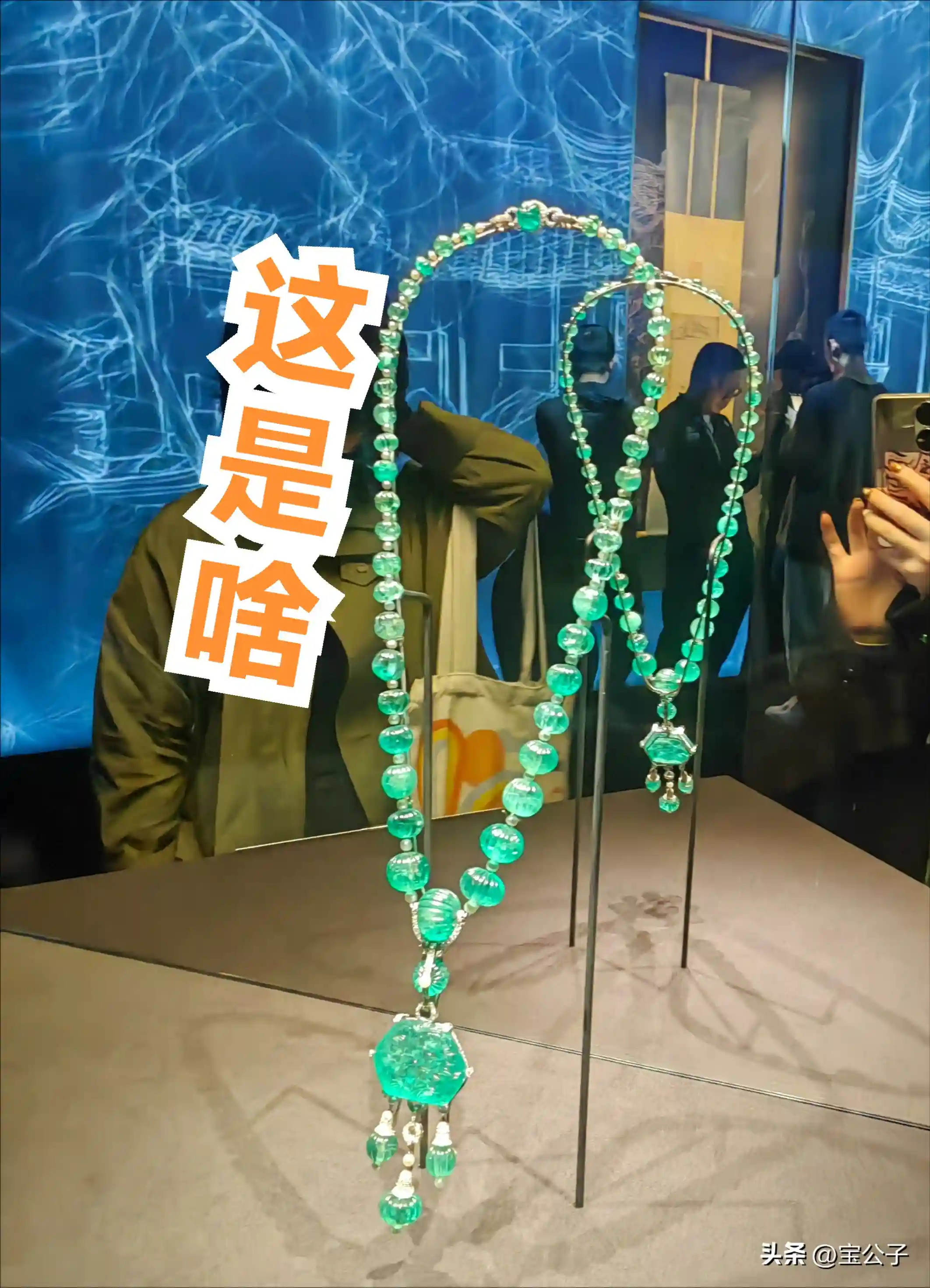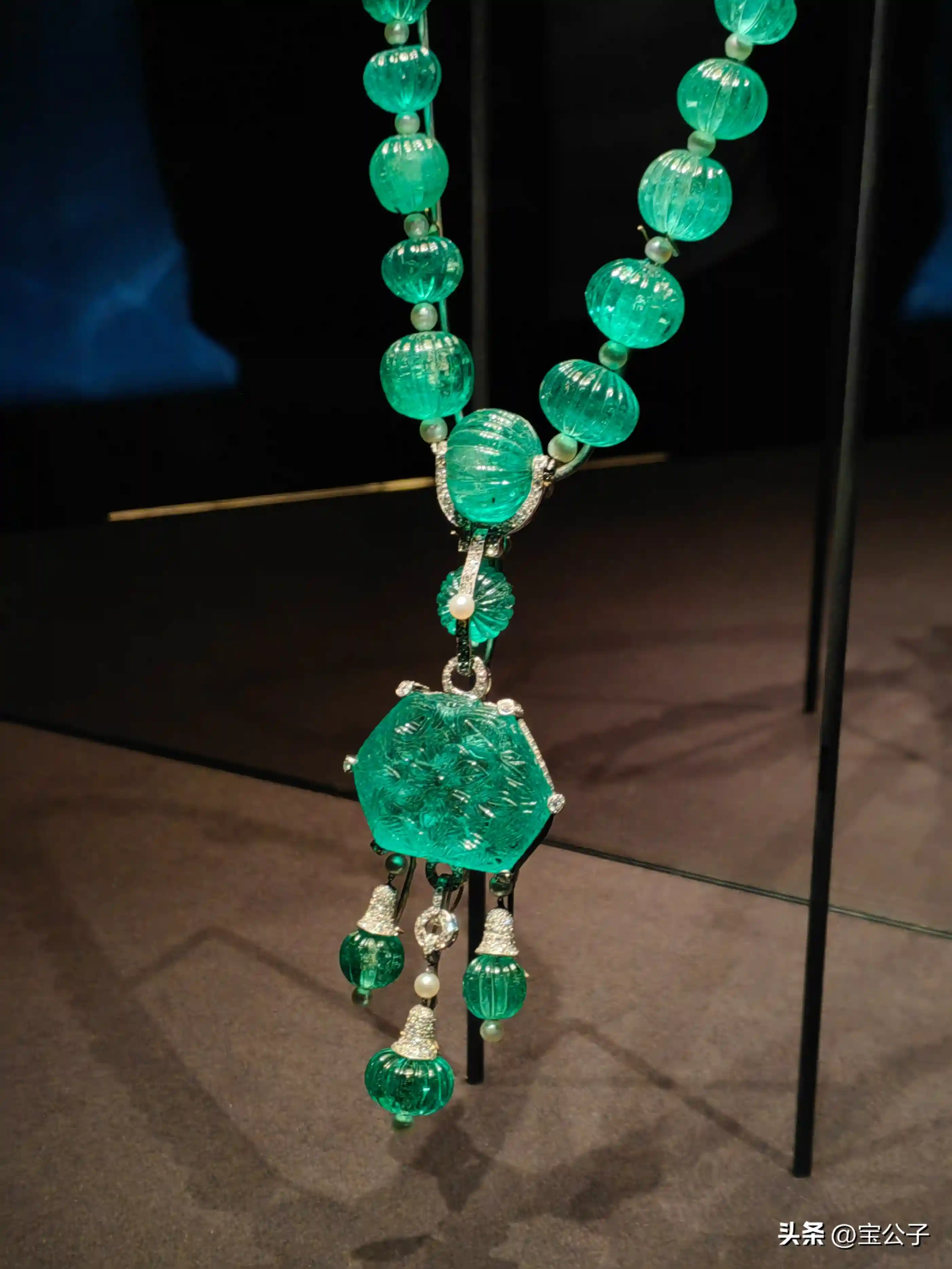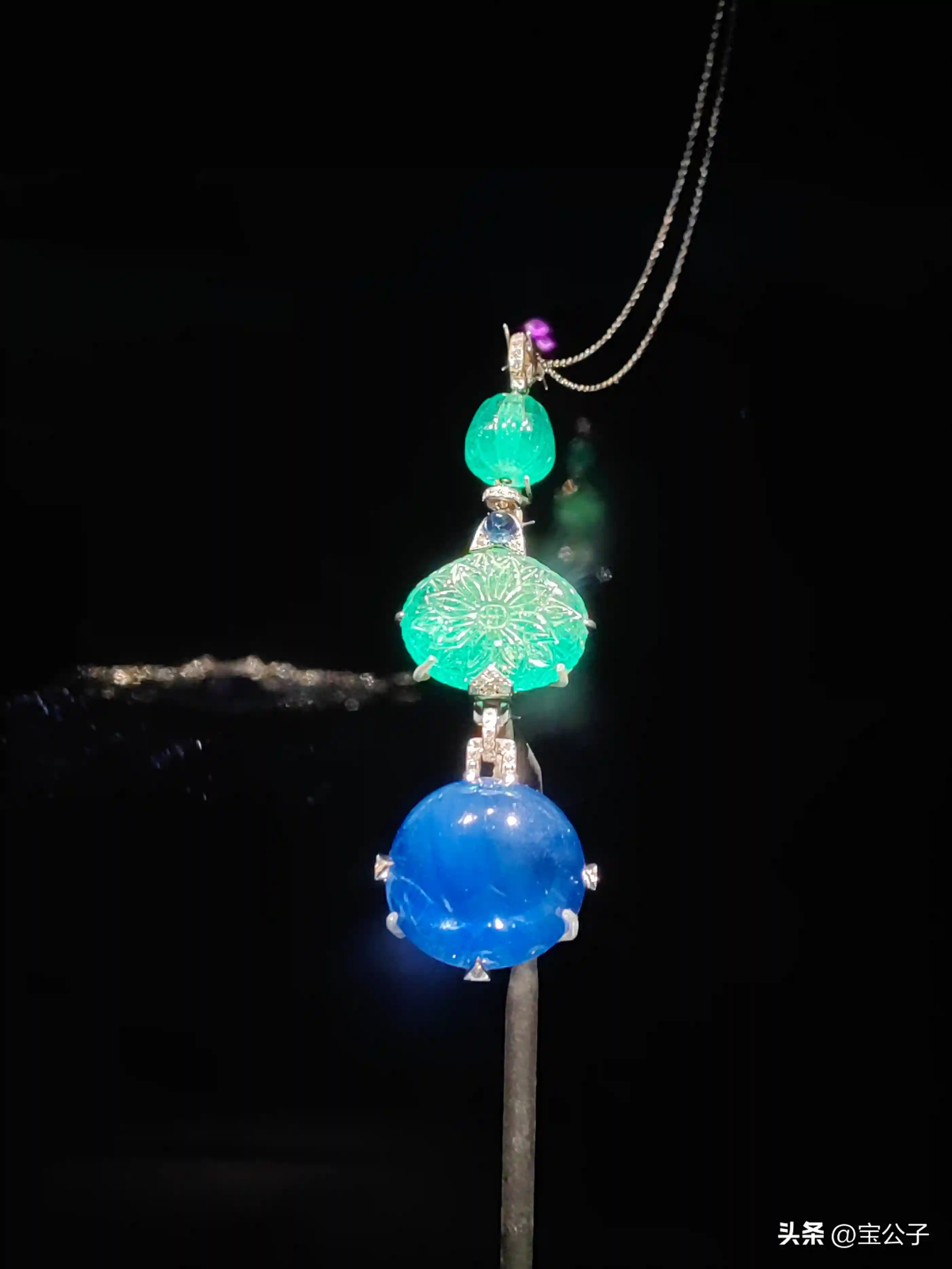 ↑祖母绿镶钻项链