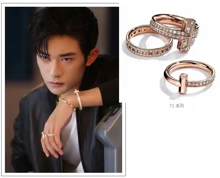 在所有TIFFANY戒指中,必须要推荐的就是T1系列。它以品牌英文字母T为造型,十分有辨识度,还是代言人易烊千玺的最爱。