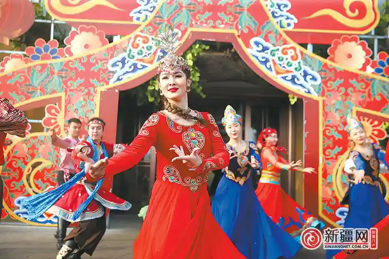 乌鲁木齐市馕文化产业园大型真人歌舞秀《向往的新疆》,以歌舞的形式带领游客沉浸式感受新疆的魅力。(媒体记者赵莉摄)