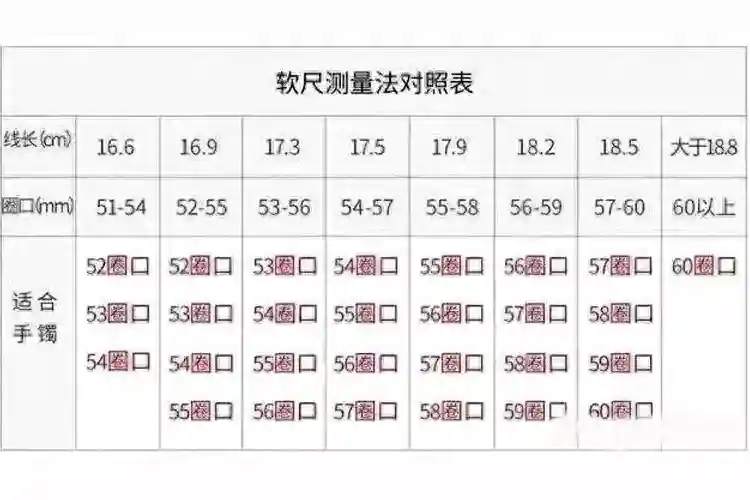 如果有软尺也可以直接用软尺绕手测量一圈。最后再把用绳子或软尺量出来的长度除以0.314就是适合自己的手镯圈口内圈的直径了。