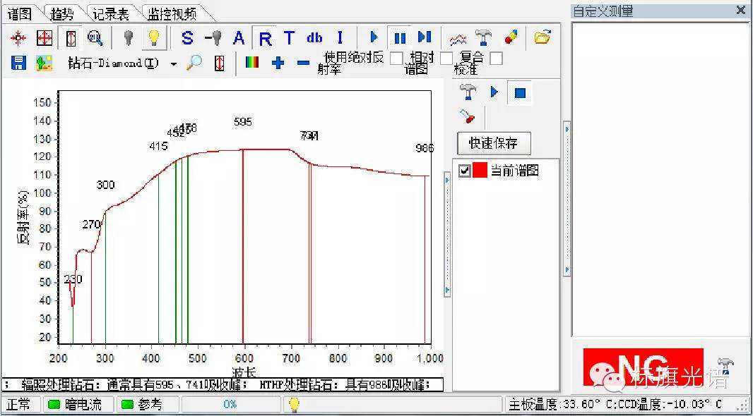 GEM-3000珠宝检测仪是一套基于反射测量的全波长光谱分析仪,可快速准确对珠宝真伪和是否染色进行鉴定。其波长范围从紫外到短波近红外,能有效检测数百种珠宝的反射光谱,1秒即可出全谱。最小可检测1厘钻石,可批量检测裸石,也可检测镶嵌厘石成品。