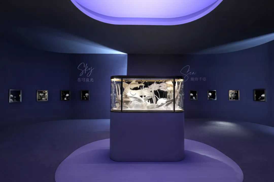 蒂芙尼从璀璨钻石中汲取灵感,以一系列镜面幕墙打造展区,在光与影的辉映中,生动叙述品牌钻石权威的传奇故事。