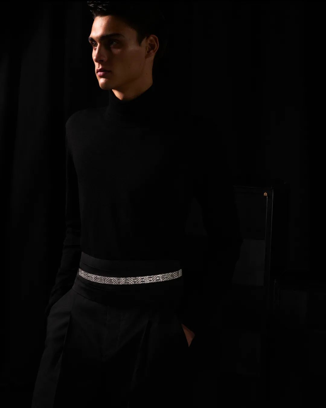 LAVALLIÈREDIAMANTS项链宛若男士的领带。纯粹而又丰富的线条奠定了珠宝作品的基调,正如一个小小的时尚细节可以提升整体造型一样。