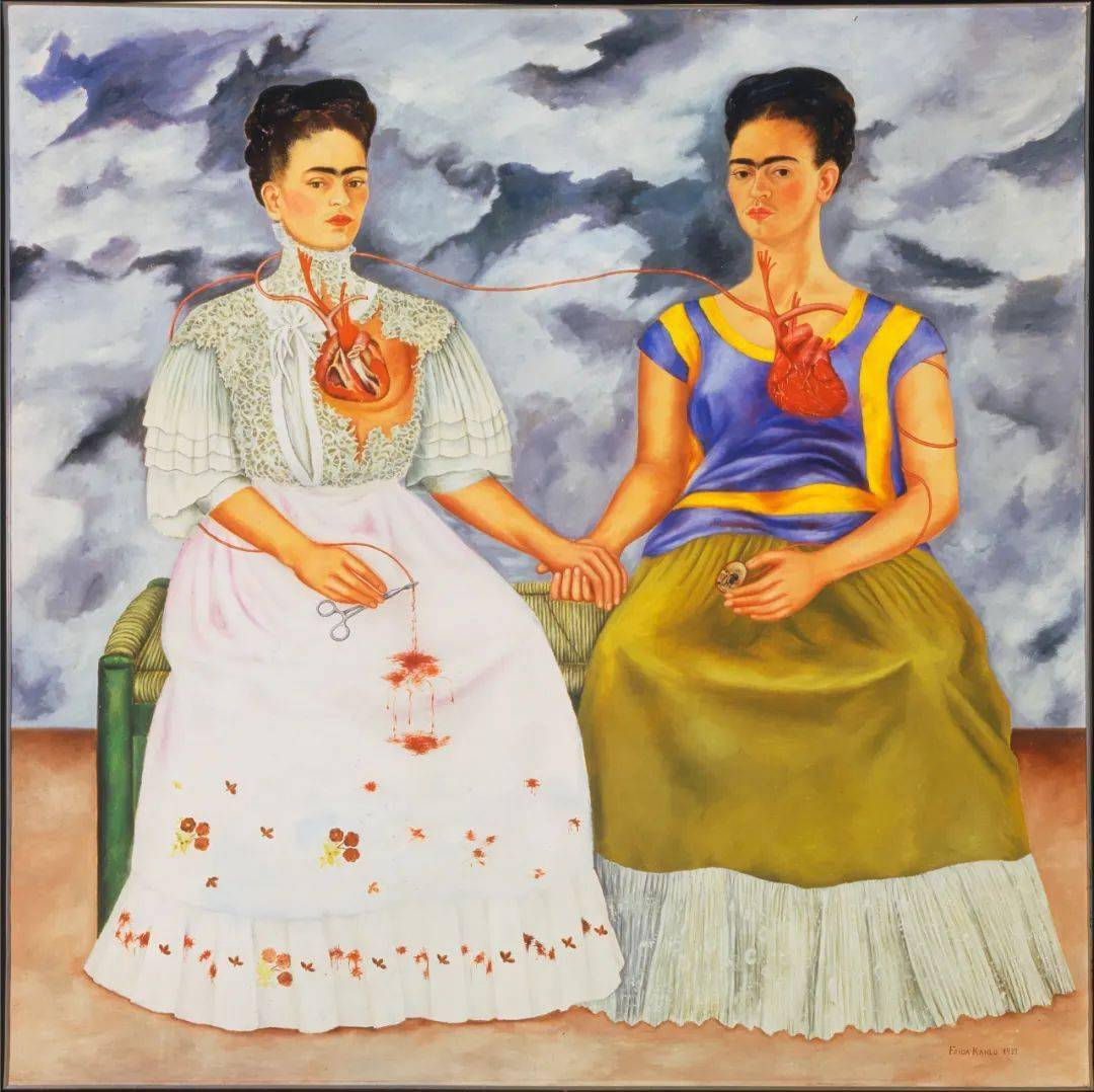 她毕生的画作中有一半以上支离破碎的自画像(如器官分离、开刀、心脏等具体的表征、代表画家的痛苦),弗里达的自画像相当有特色,以她的一字眉(左右眉毛连在一起)和嘴唇上薄薄的髭闻名。她的画作是法国罗浮宫博物馆收藏的第一幅墨西哥画家作品。