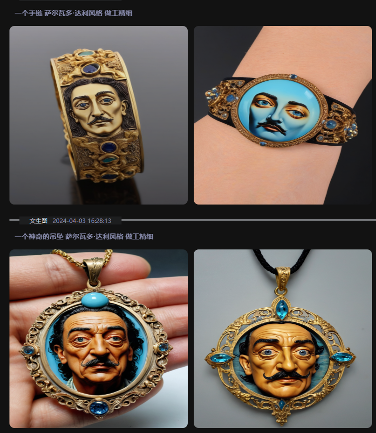 AI设计遇到达利的珠宝风格,很难融汇贯通。就像上期文章J先生所说:对于具有自己独特设计风格的设计师来说,AI绘图并不会造成冲击,因为他们对美学、对珠宝设计的理解,并不是简单拼凑元素,而是有自己的思想。