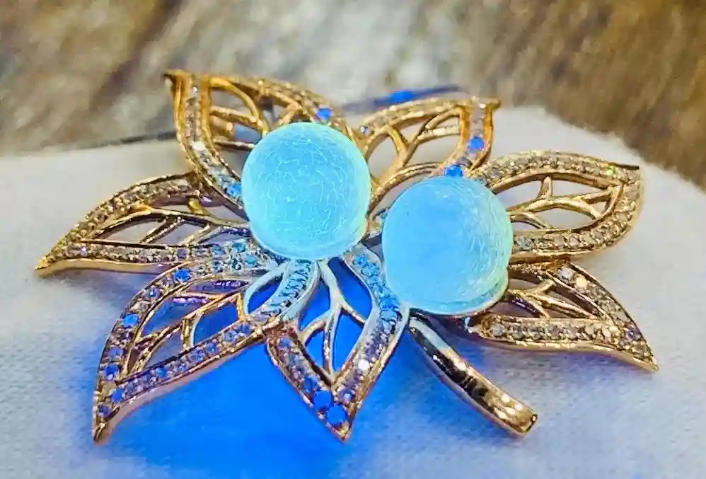 如果这样还不够璀璨夺目,那当紫光灯灯柱照在宝石上的时候,耀眼的光芒会让人感到无比惊艳!