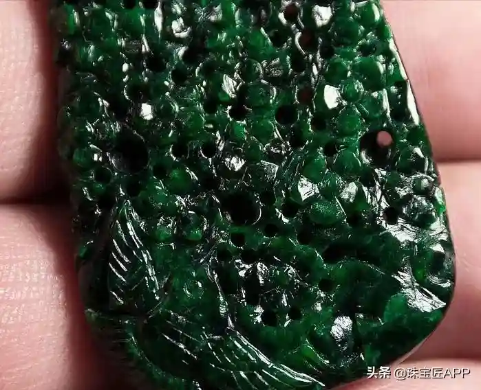 还有一种是因为劣质干青本身因含有大量钠铬辉石导致硬度较低,不易抛光,外表发“干”而且质感“渣”且“酥”,为了加工后表面光泽且坚硬,表面进行了注胶或灌蜡处理,所以出不了A货证书。