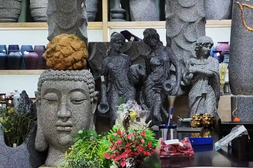工艺品区的佛教头像和希腊雕像并排而置。(黎瑾/图)