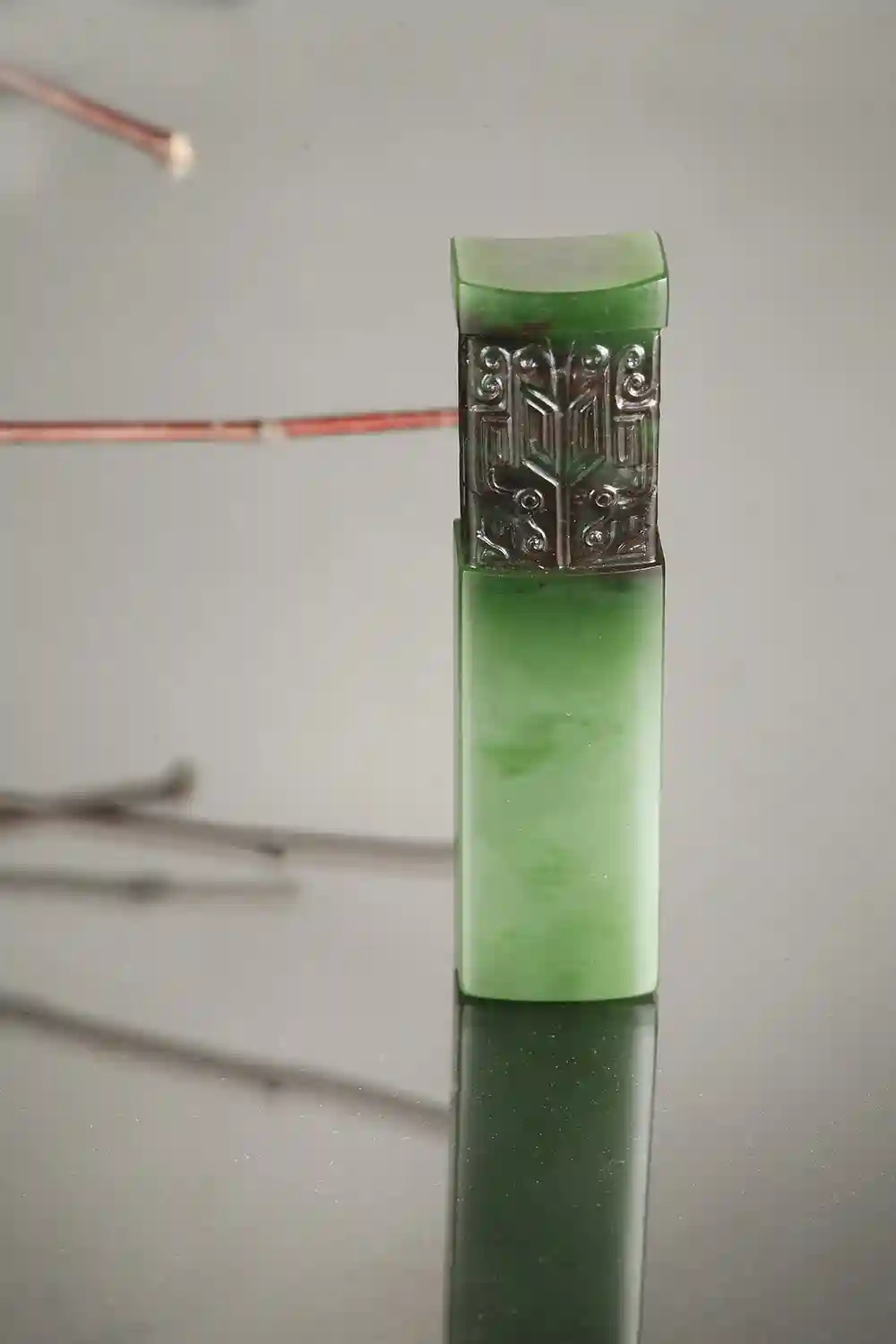 然而,现今高端碧玉原料的分类方式已不再依据颜色,转而以其材质的“种水”作为区分标准,也就是料子起不起冰、有没有荧光感来划分,主要为肉料与冰底料两大类别。正如翡翠的价值在很大程度上取决于其“种水”一样,碧玉的“种水”也是其“底子”,同样是衡量其价值的重要标准。