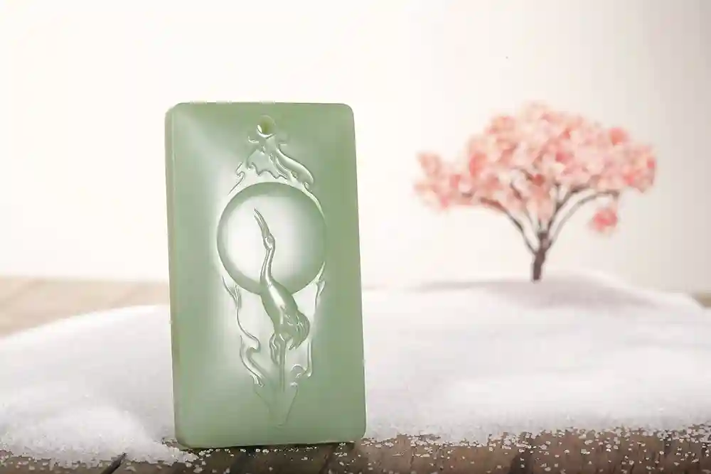 菠菜绿色系碧玉中,菠菜绿以其深沉浓郁最为标志性,备受消费者青睐,资深玩家尤爱老坑菠菜绿与七号坑碧玉,色泽浓郁细腻,品质卓越,但此类老料现已极为珍稀,市场难觅。粉底色系则包含粉绿等色,粉绿犹如水粉画中的绿意,娇嫩明媚,其稀有性亦使其备受追捧,大块粉绿碧玉至今未见,或仅为碧玉边缘的偶然之作,与鸭蛋青相比,粉绿更显“绿”之韵味。鸭蛋青色系则涵盖鸭蛋青、瓷白、瓷蓝等,其颜色多变,室内自然光下透青蓝光泽,细腻油润,强光下则显淡淡青绿,更添水润。顶级鸭蛋青以粉青色最佳,兼具水粉绿之娇媚与浓郁浑厚之色泽,均匀无色差。