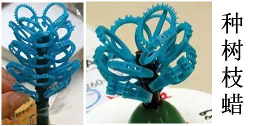 ①种树枝蜡:将每个蜡环单独手工焊接到一根蜡棒上得到一棵形状酷似大树的蜡树,准备进行浇铸。