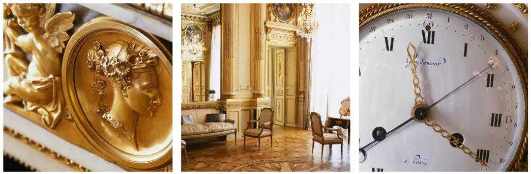 「历史沙龙」1777年由建筑师Bélanger设计装饰,与著名建筑师Mansart设计的外立面相得益彰。内部镜面倒映着科林斯柱式,海洋主题的镶嵌细工和绘画雕刻交相辉映。