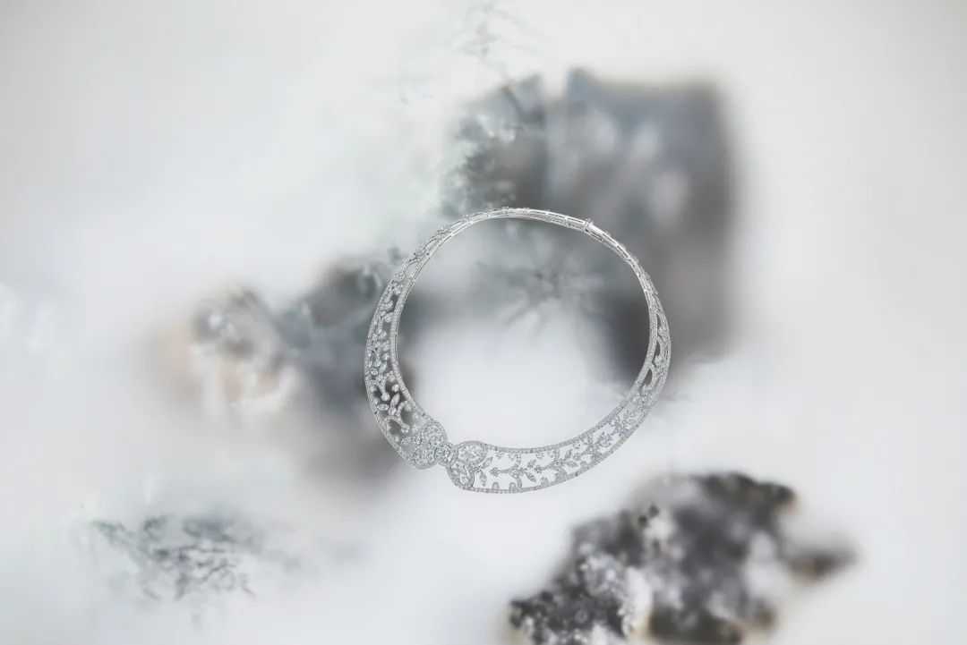 值得一提的这条以932颗手工甄选的白钻打造而成的钻石项链,描摹了极地霜花之景。