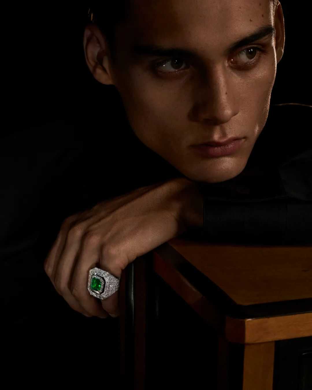 当时,男性佩戴高级珠宝被视为拥有权力和荣誉的象征。设计总监ClaireChoisne将这种纯粹的力量与质感柔和的祖母绿相结合,献礼于当代女性。