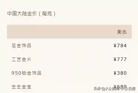 从具体数据来看,多家知名黄金品牌的最新报价均反映了这一下跌趋势。例如,周大福的黄金价格跌至每克788元,18日金价为每克802元。周生生19日则为每克784元,18日为每克800元,一夜降16元每克。