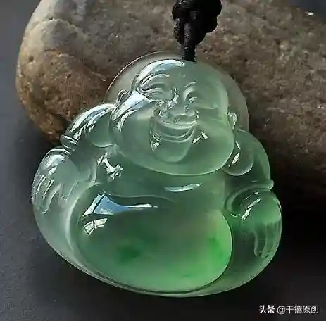 从画面上看,这枚翡翠佛就是我们熟知的翡翠大肚佛,也就是弥勒佛。