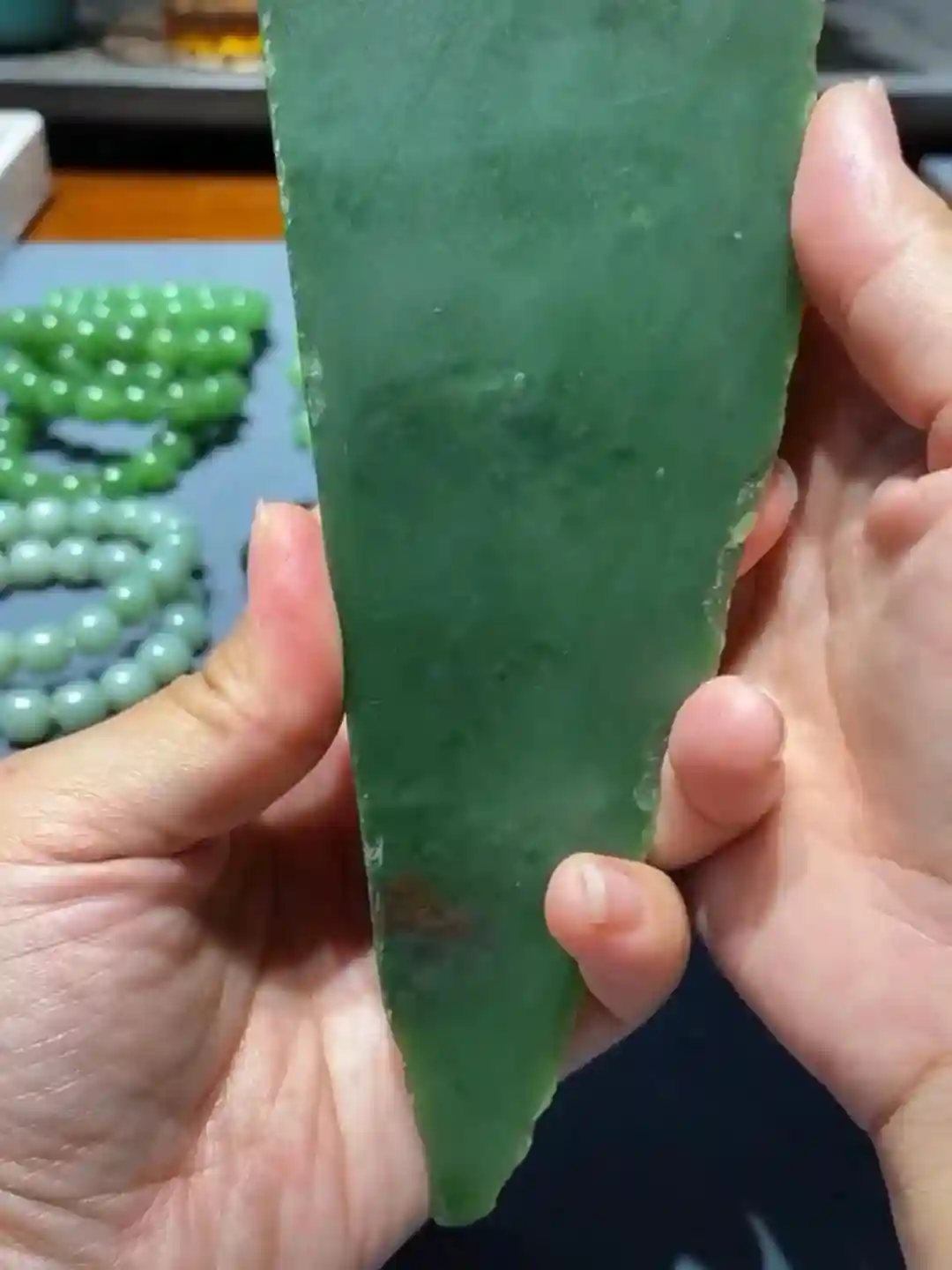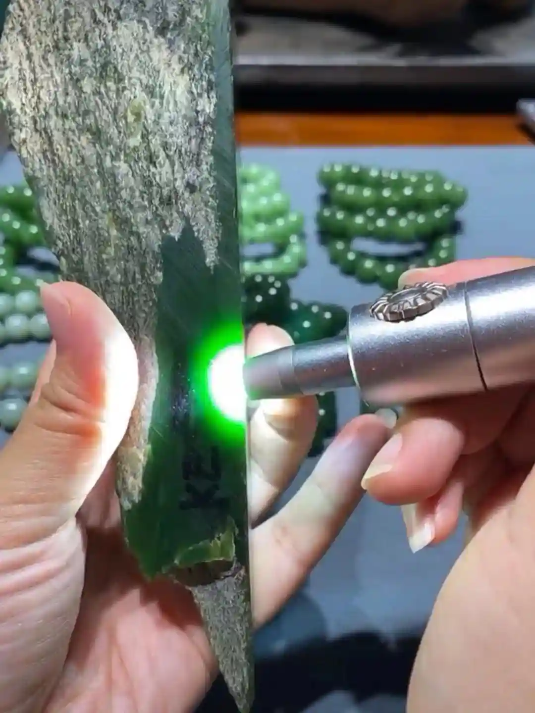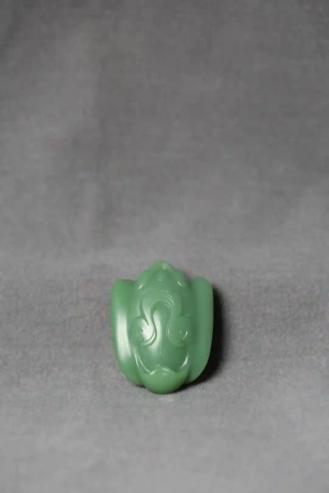 从玉质分:大致分浓底和冰底。什么叫冰底呢?水透感强,像绿色的冰体一样。形象点讲,您看玻璃的啤酒瓶底就对了。这种原料一经打磨,珠宝感极强,是镶嵌的最佳代表。