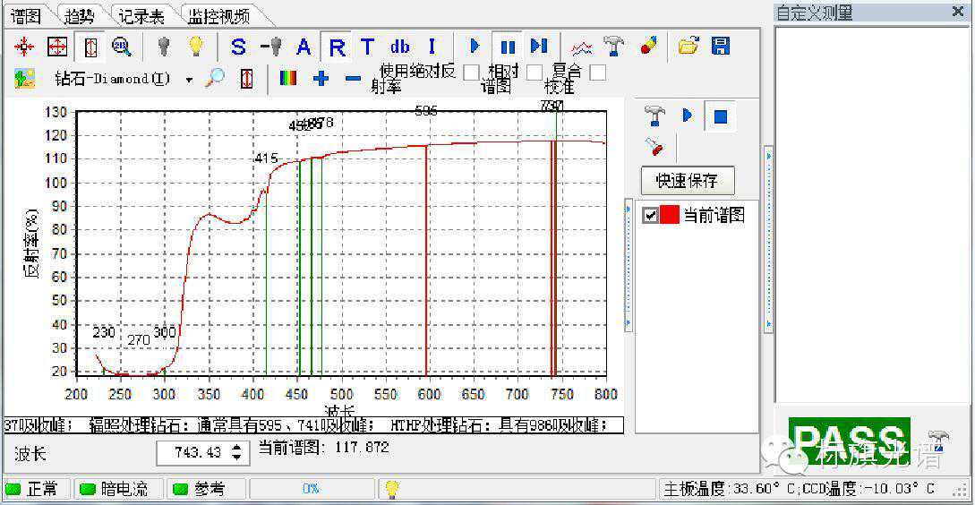 GEM-3000珠宝检测仪是一套基于反射测量的全波长光谱分析仪,可快速准确对珠宝真伪和是否染色进行鉴定。其波长范围从紫外到短波近红外,能有效检测数百种珠宝的反射光谱,1秒即可出全谱。最小可检测1厘钻石,可批量检测裸石,也可检测镶嵌厘石成品。