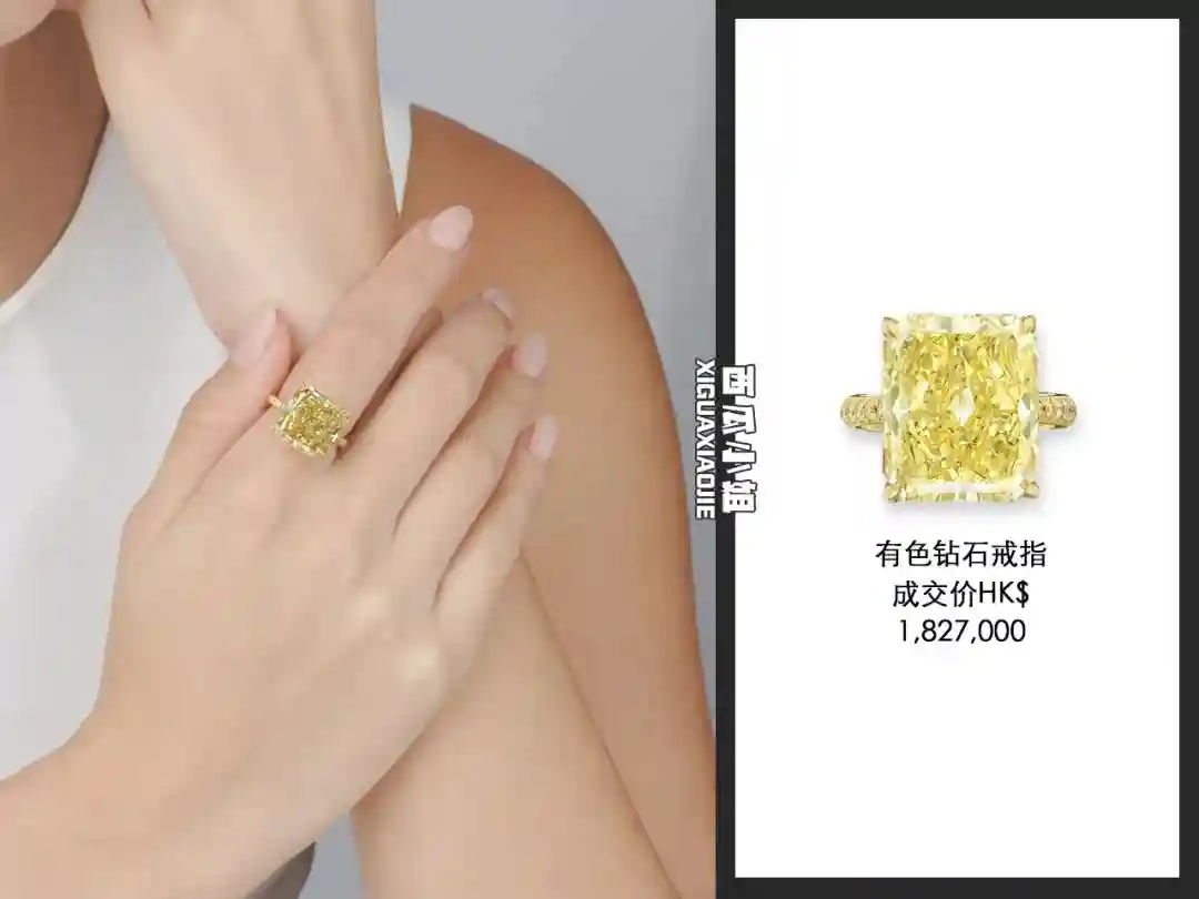 黄钻也很受欢迎,12.26克拉的正方形浓彩黄钻戒指,拍出了180万。