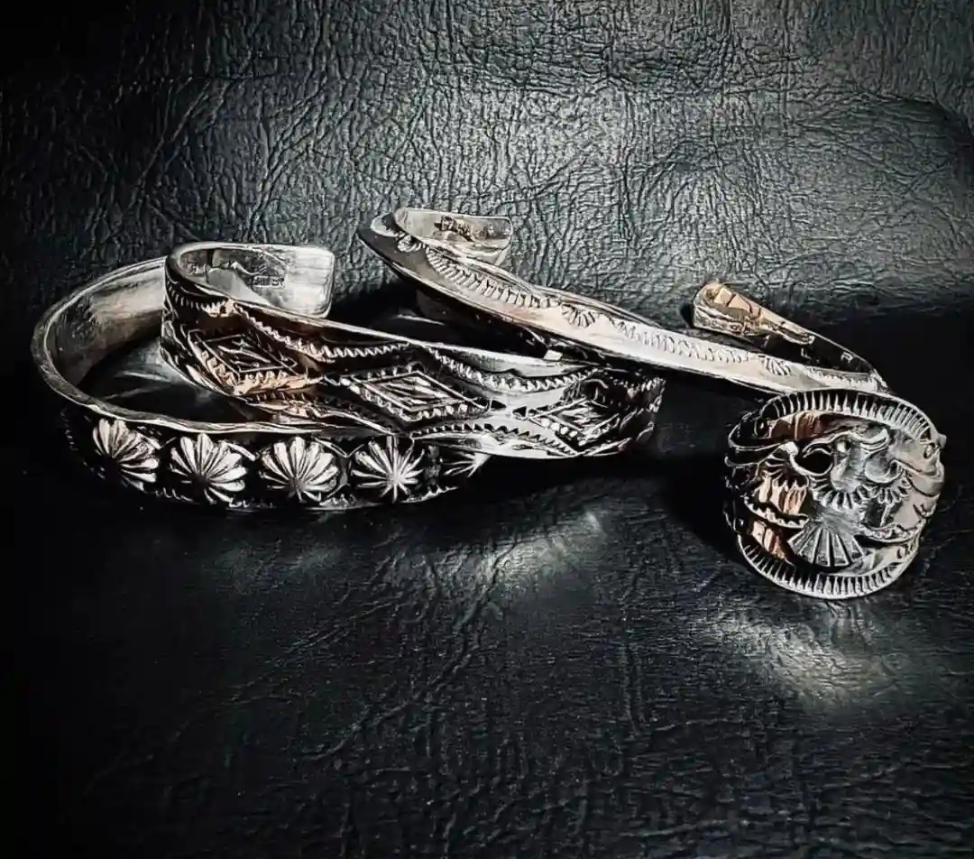 除此之外,印第安文化在设计中,还体现为多样化的设计表现。很多人都会认为,只运用印第安文化元素进行设计,会使得首饰作品呈现出单一的状态。但其实不然,印第安文化其实是一个泛称,根据不同部落的特征,可以分为Navajo、Zuni、Hopi和SantoDomingo等等,这些多样化的元素风格也可以在DearBlossom的产品之中发现,比如DearBlossom性价比之王唐草戒指或者金点蔷薇系列的产品,风格非常鲜明,手工感强烈。