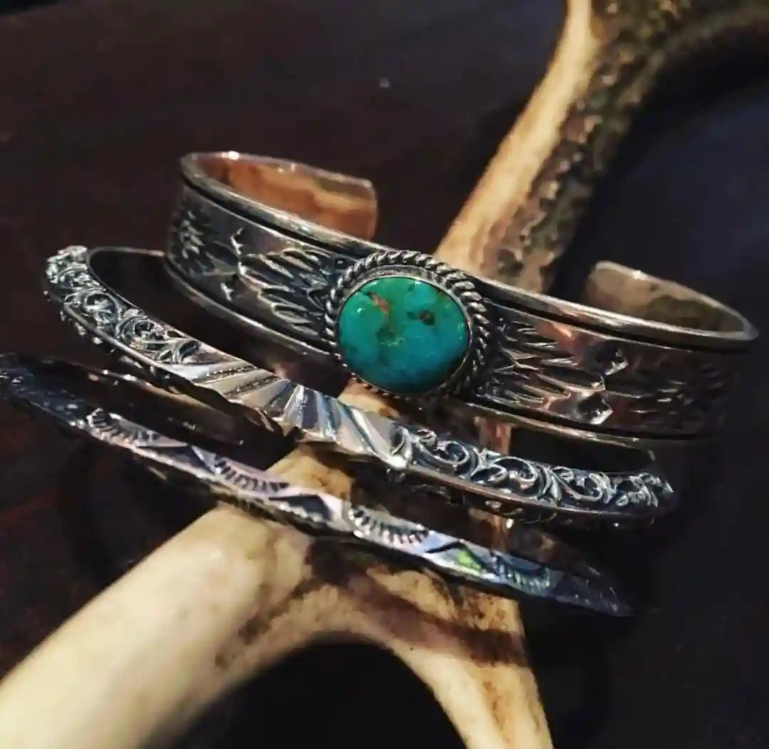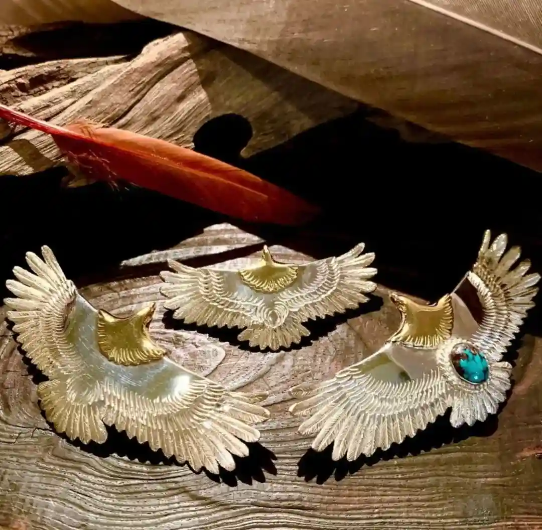 为了更好的了解印第安风格的元素,需要先去了解印第安文化在银饰设计上的特点。印第安文化里对绿松石具有极大的崇拜,因为绿松石饱含了印第安人对于雨水的渴求和神灵的一种敬拜之情。因此,在很多印第安风格的银饰中都包括绿松石的点缀,不论大小。DearBlossom也不例外,除了运用上等物料,松井直毅毫不吝啬对绿松石的喜爱之情。