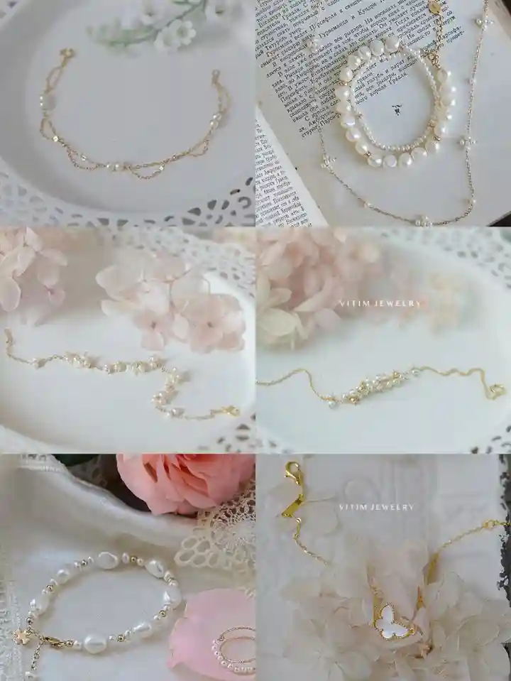她们家其实什么饰品都做但我觉得手链很好看!大部分也都是珍珠质感。很高级喔!