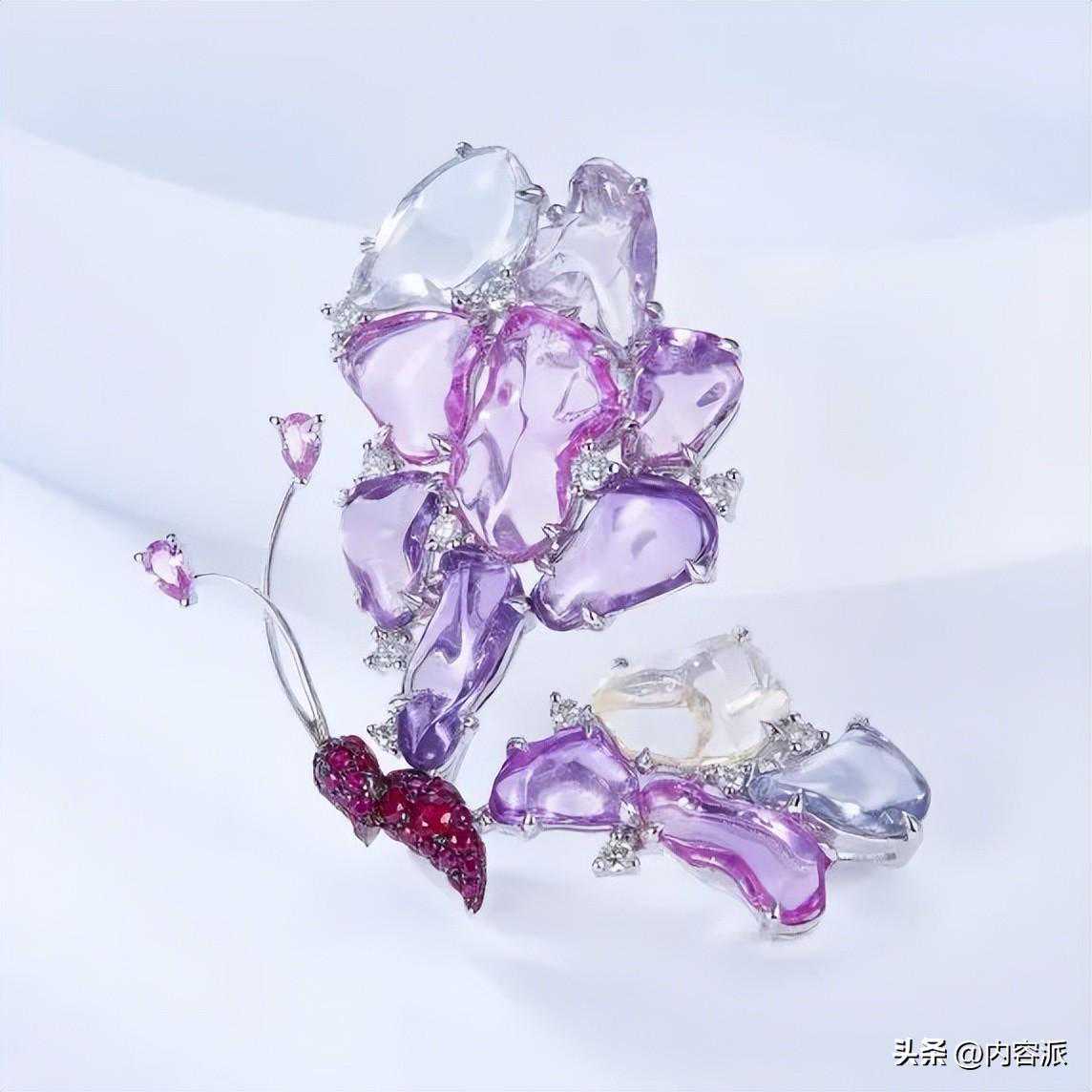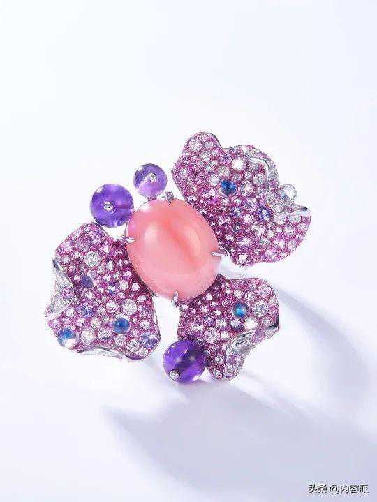 随型的翅膀,是不受束缚的烂漫,配以彩宝的通透和多层次色彩,营造出蝴蝶轻盈的质感。