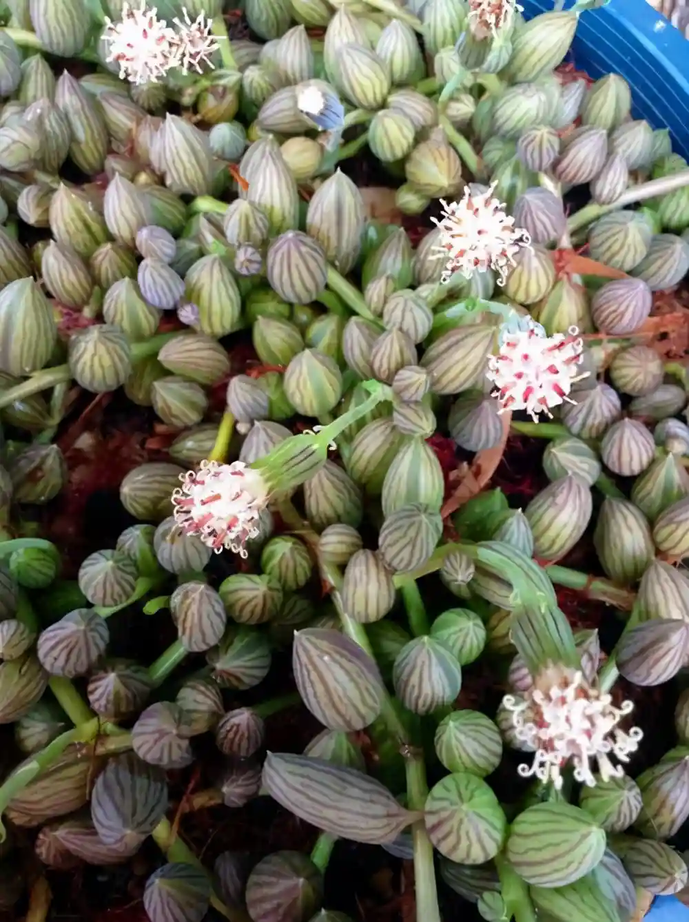 二来,此三者叶形奇特,并不是以往人们认知中的传统片式肉叶,而是颗粒分明,宛若“大珠小珠落玉盘”一般的珠状圆形、或类圆形叶子,小巧精致、浑圆饱满。不过,也如小花所说,不管外形有多么相似,只要不是同一种植物,它们多少都会存在一定的区别、差异,而这便是我们可以下手的地方,通过仔细比对植株的茎、叶、花、果实等,得出答案。