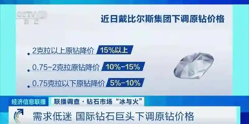 对于2克拉以上的大颗粒原钻,降价幅度普遍超过了15%,对于市场需求量相对稳定的0.75克拉至2克拉区间的原钻,其平均降价幅度也被设定在了10%至15%之间,至于0.75克拉以下的小颗粒原钻,虽然降价幅度相对较小,但也达到了5%至10%。