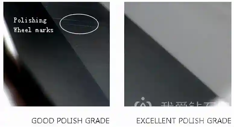 在抛光过程中,可能会产生细微的缺陷。对于抛光等级为优至良(Execellent/VeryGood/Good)的钻石,这些缺陷肉眼都是看不到的,对钻石的整体外观没有影响。