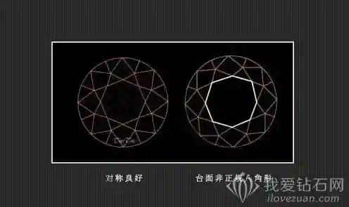 由于对称性差的钻石有肉眼可见的缺陷,所以应该尽可能提高钻石对称等级,EX级别是首选,最好不要低于VG级别。
