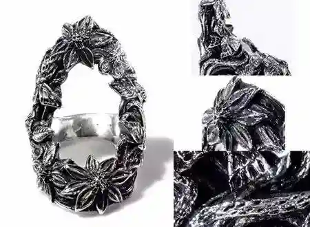 LylyErlandsson这一品牌都以花花草草为设计元素,真的没想到会有如此的魅力吧。来自日本的LylyErlandsson专门往这一派系的方向发展,并融入宝石点缀加上雕工细腻,整个作品散发出一种黑暗神秘又梦幻的魅力,曾经带过的名人有Hyde,摇滚巨星也亲身戴过就是不错。