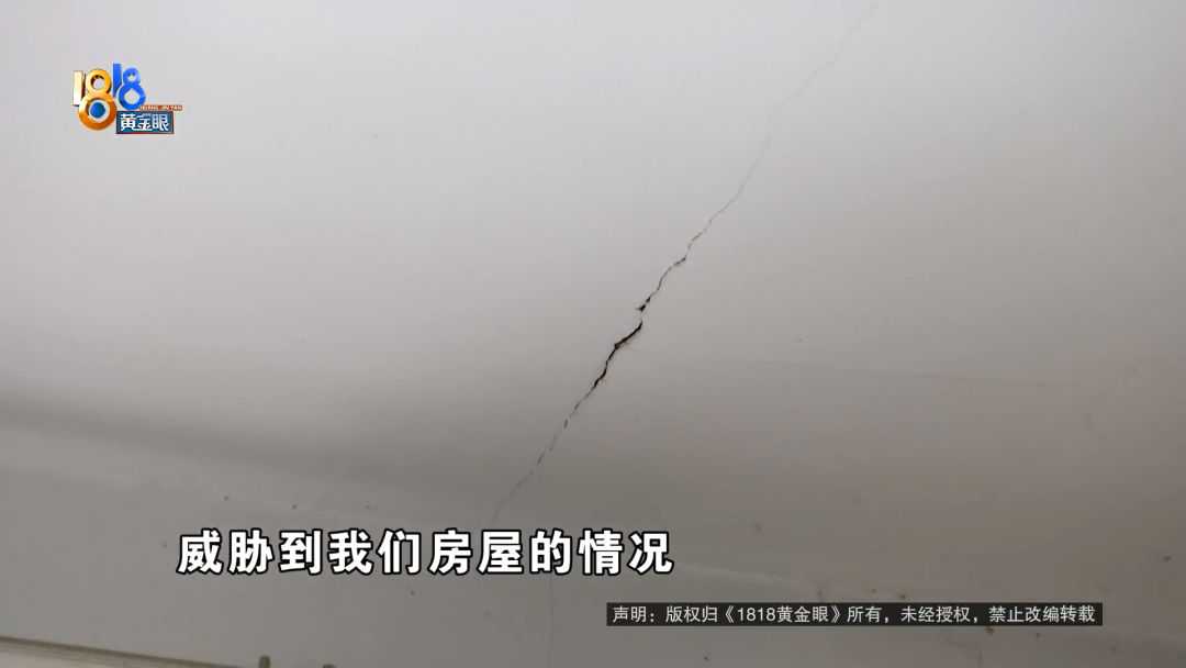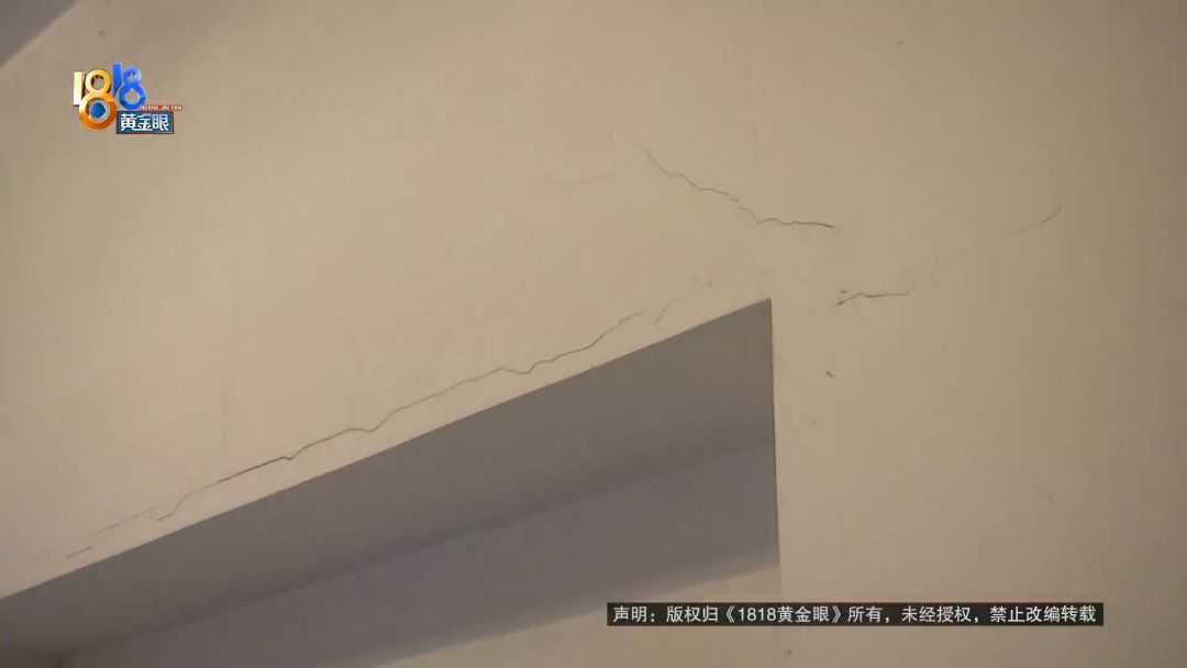 丁女士:他现在这个装修队,为了让这个珠宝商能够放他的展柜,就把一楼的承重柱,大概有3-4个,基本都敲掉了。他把这个柱子敲掉了,破坏房屋结构,导致我们这边每家每户,基本上都出现不同程度的裂缝。