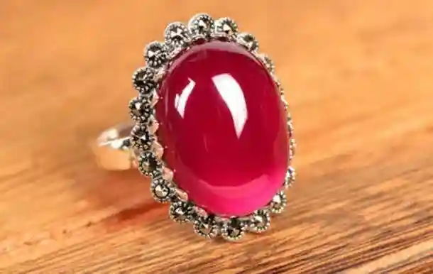 其次就是红宝石是具备二色性的,所以在强光的照射下,它可以呈现出两种不同的光泽,但是看上去这样的光泽却比较温和,但是人造的红宝石散发出来的则是跟玻璃一样的光泽,强光的照射之下就更加明显了,特别刺眼。