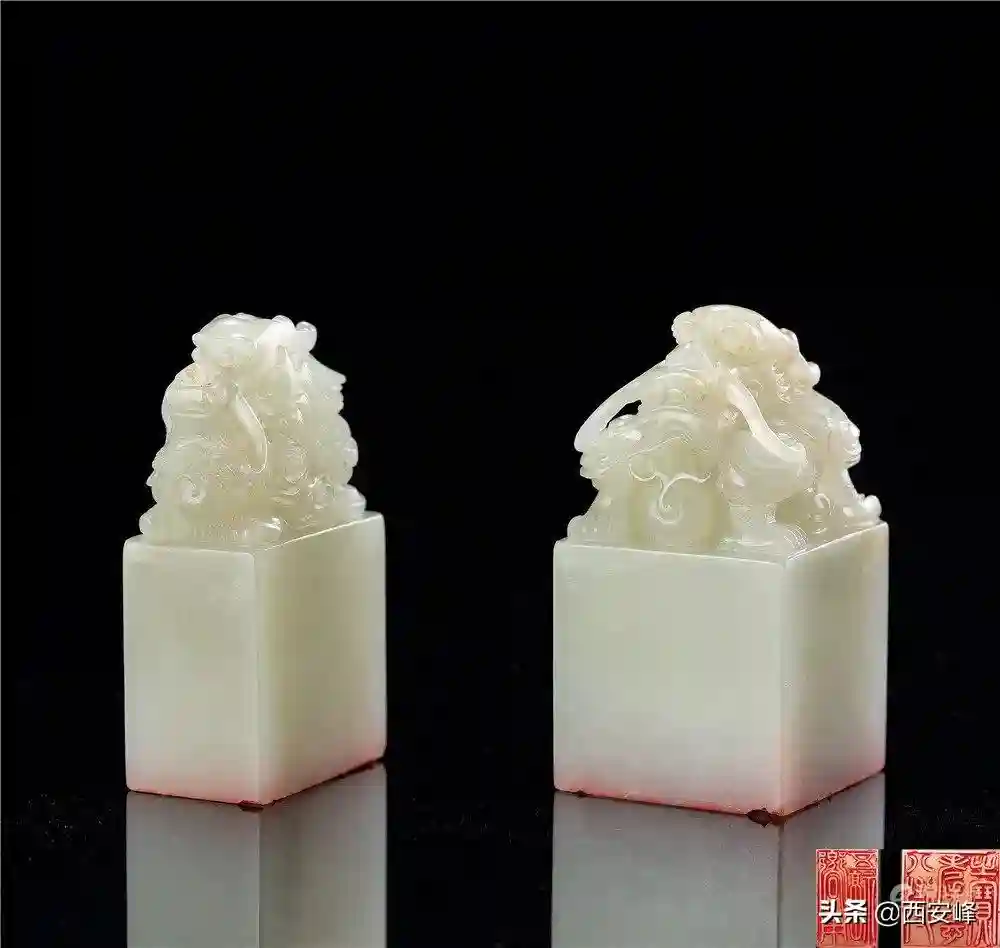 清乾隆五十四年(1789年)御制白玉蹲龙钮「八征耄念之宝」「嚮用五福」宝玺(一组)(Lot1816)