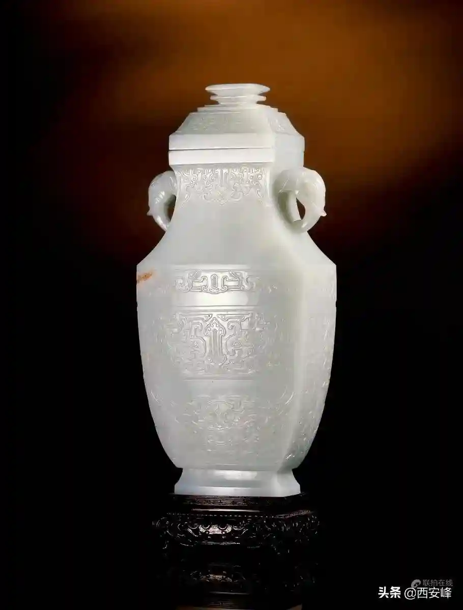 清18世纪白玉兽面方瓶(Lot6473)