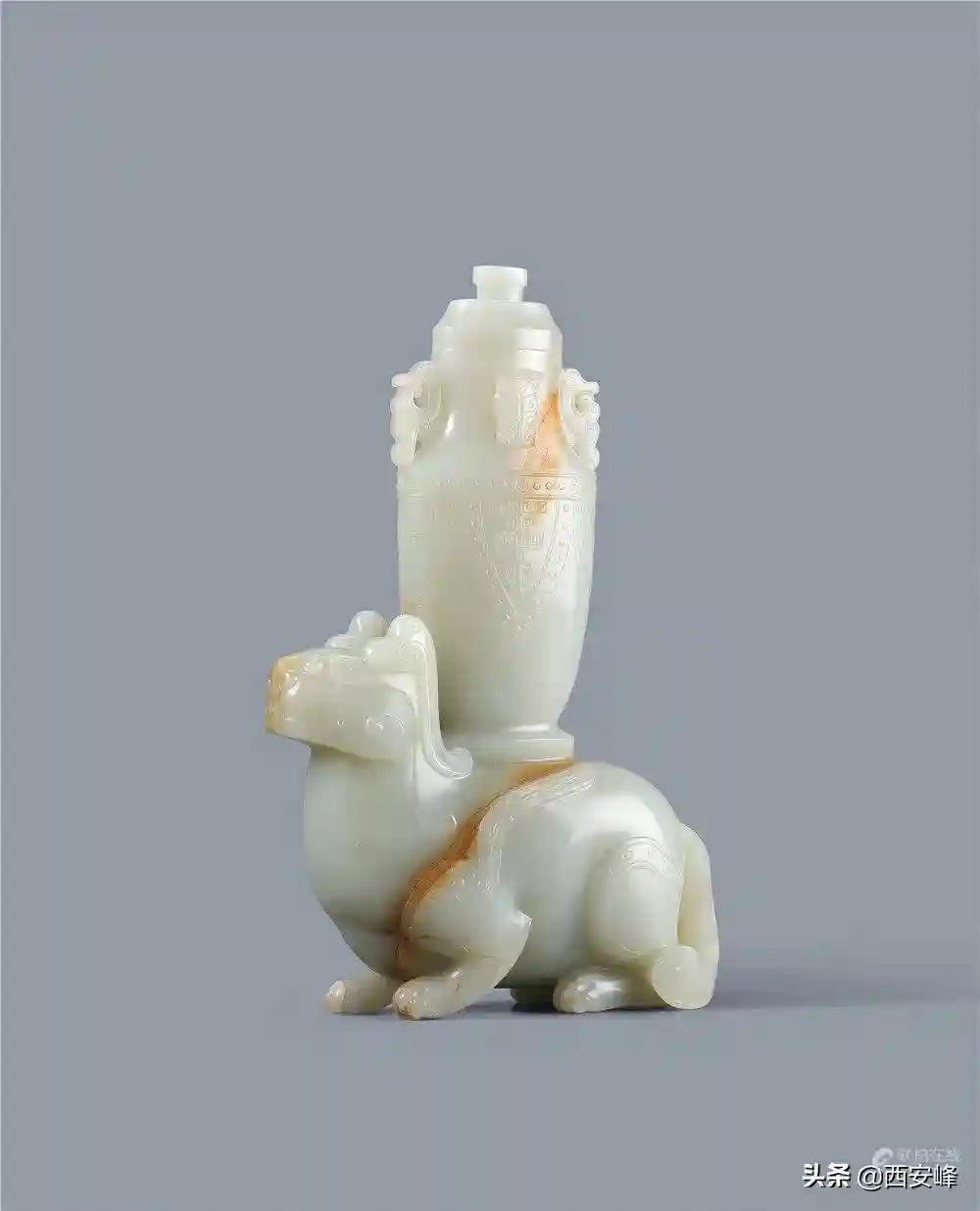 清乾隆青白玉雕瑞兽托宝瓶摆件(Lot0041)