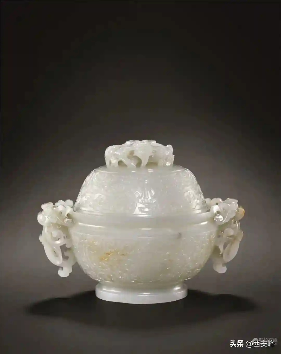 清乾隆和田白玉雕饕餮纹龙钮簋式盖熏(Lot1178)