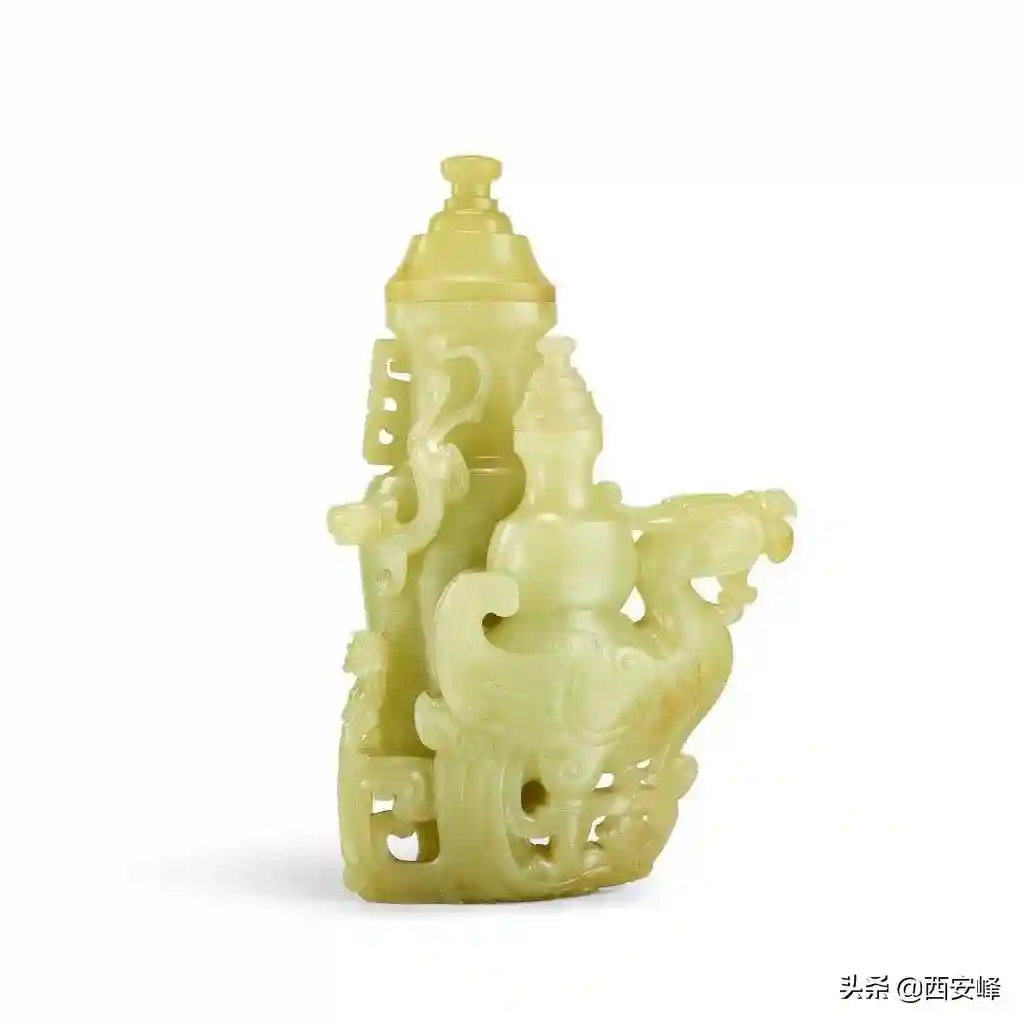 清乾隆黄玉仿古祥凤螭龙双联瓶(Lot3625)