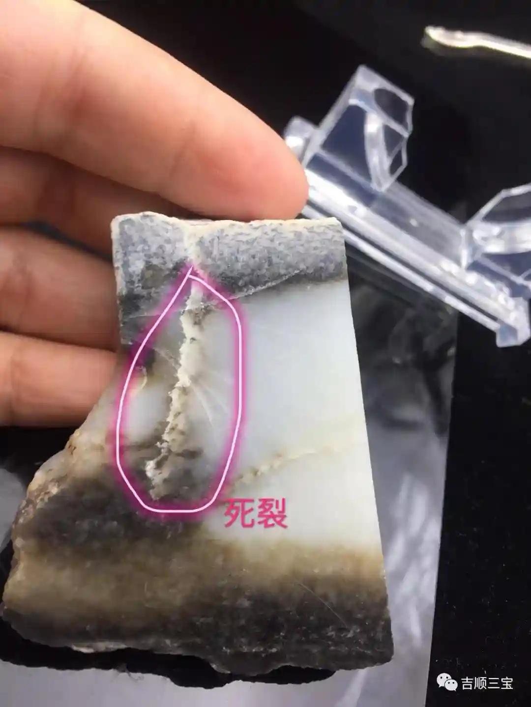 活裂,顾名思义,活裂是会长的,这个“长”指的是变长加重,不是愈合。这种裂一般是难以预测的,其如同玻璃上的裂纹,纵、深、利,且不易察觉。日常佩戴的磕碰,甚至雕刻中的高频振动,都可能让情况进一步恶化,甚至完全断裂开来。