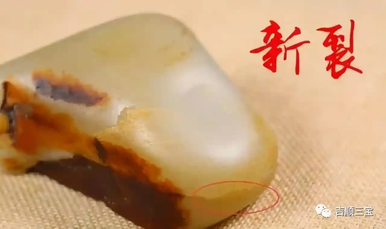 新裂,形成的时间较短,裂一般比较嫩,在裂口处颜色较浅,或者是沁色不明显。这种新裂一般很需要警惕,因为我们看不出裂的深浅,如果是深入到玉质内部,对料子的影响就会很大。