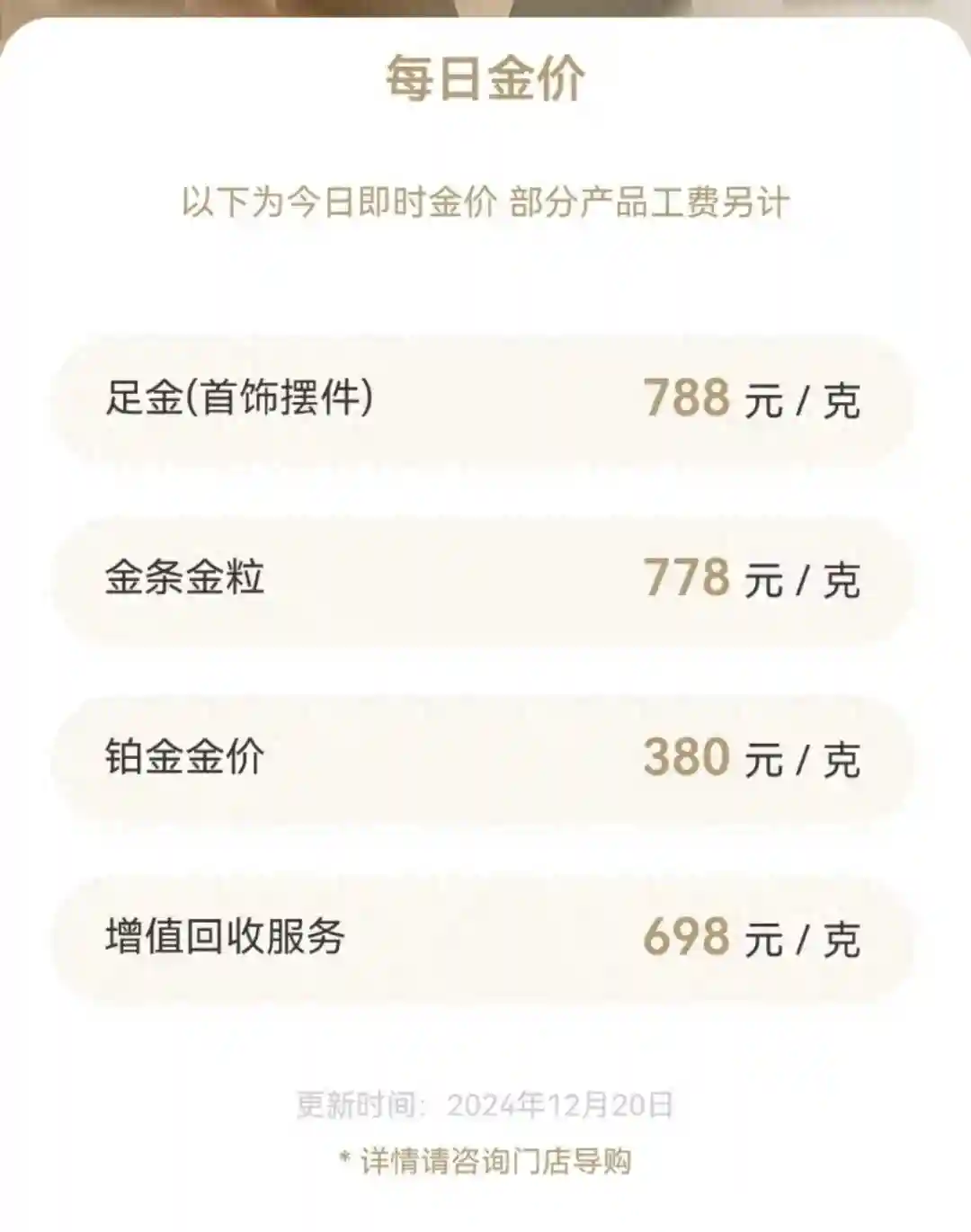 潮宏基、六福等品牌也均保持在788元/克的水平。此外,老凤祥、老庙黄金、千禧之星等品牌的黄金价格也有所下跌,但跌幅略有不同。