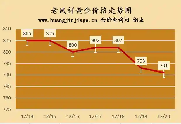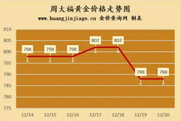 2024年12月20日,各品牌金店黄金零售价格基本不变。据景蓝-金价查询网统计今日黄金首饰价格每克在628元至791元区间(工费另计),投资金条价格每克624元左右,白银价格7.0元/克。