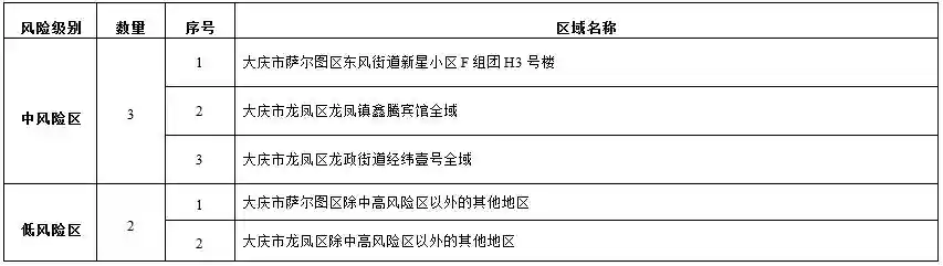 大庆市风险区一览表
