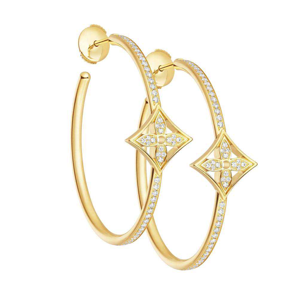 新作运用Monogram花纹中的3个经典元素——「四角星」图案起源于公元9世纪的埃及艺术,搭配色调温和的玫瑰金材质;「圆环中的四瓣花」图案多见于中世纪建筑,采用白金来塑造圆润的轮廓;「菱形之中的四角星」来自11世纪的日本传统花纹,以黄金来衬托闪耀的星光。