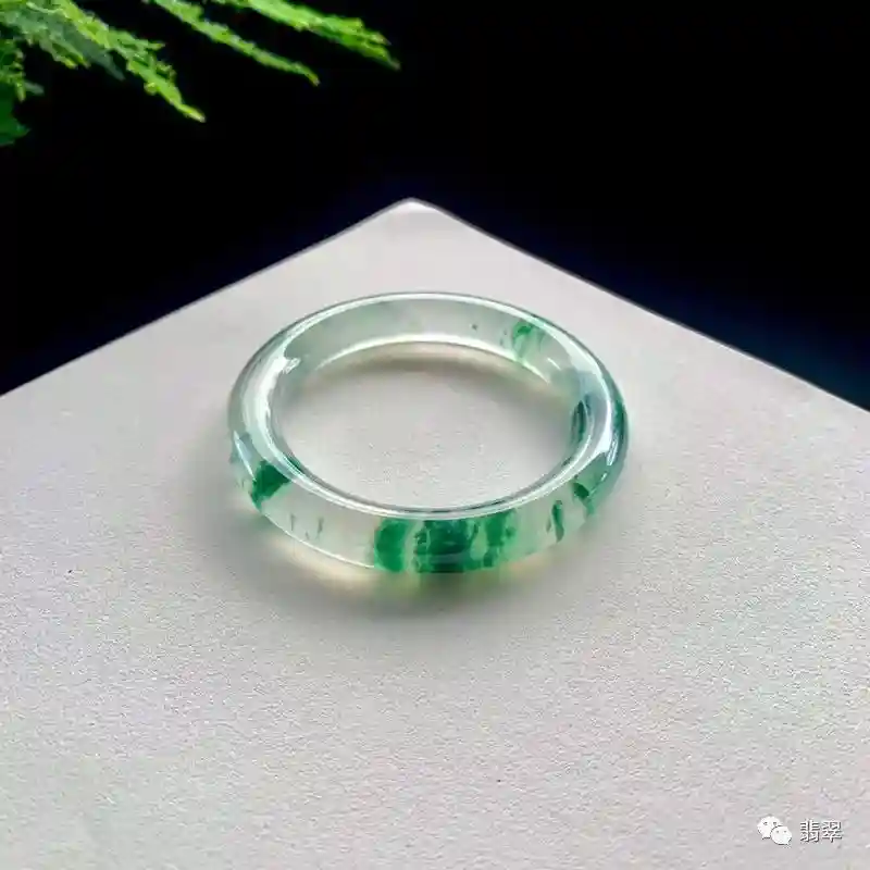 玻璃种翡翠内部矿物颗粒小,为微晶或隐晶质,结构致密,透明玻璃般。高品质的玻璃种翡翠,厚度1cm的手镯,可透明如水晶,一般为无色,也可以为绿色。