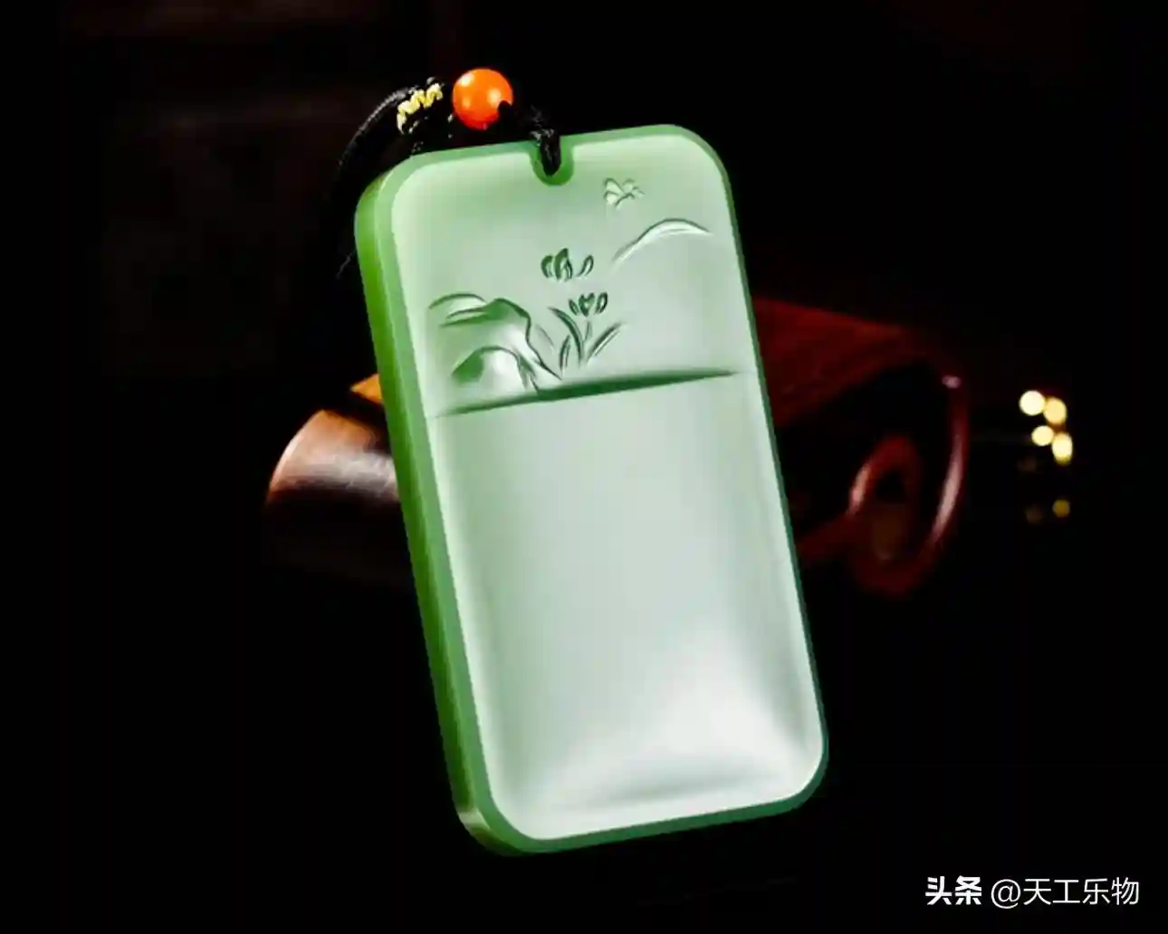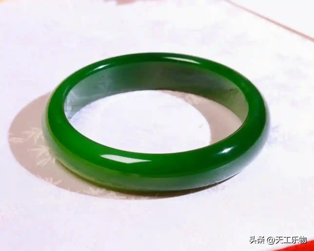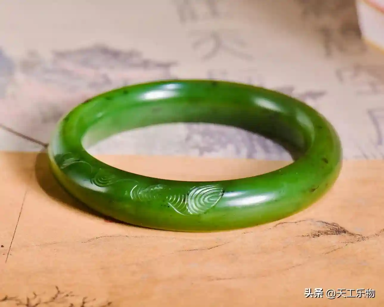 往往越好的碧玉老料,菠菜绿的颜色就越深,甚至有一点偏墨绿的感觉,但是打灯就是漂亮的阳绿。