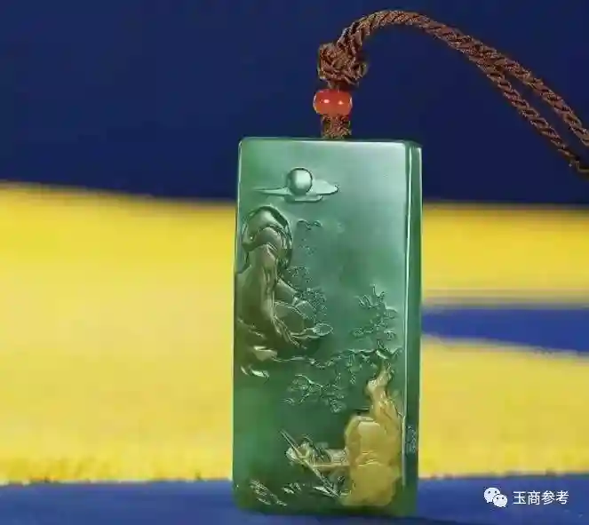 籽料带翠也会为玉增添一种颜色,如果带翠的料又带有一种皮色,也就成了三色。